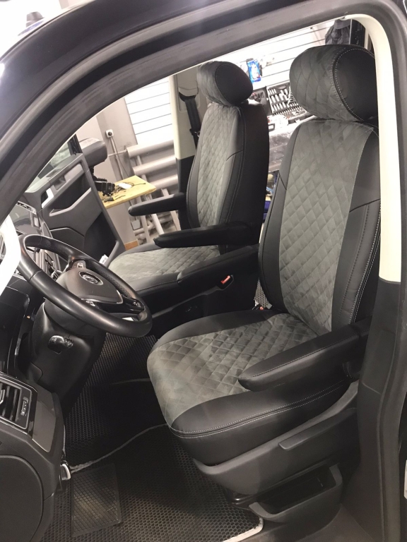 ВНИМАНИЕ! Есть отличительная особенность от VW Т-5 до 2009 г.в. (до рестайлинга). В данном случае ширина верха спинок и толщина подголовников - 8 см., а длина подлокотников – 40 см. До рестайлинга соответственно - 10 см., а подлокотники толстые (с выемкой), длиной – 33 см.